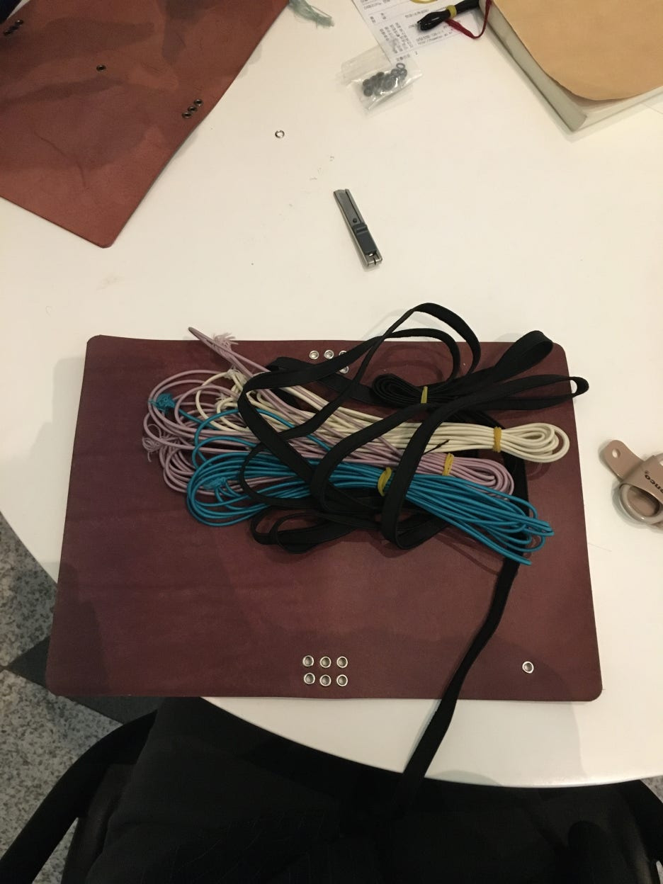 가죽 한평, 아일렛 1호 1쌍, 아일렛 결합 도구, 고무줄